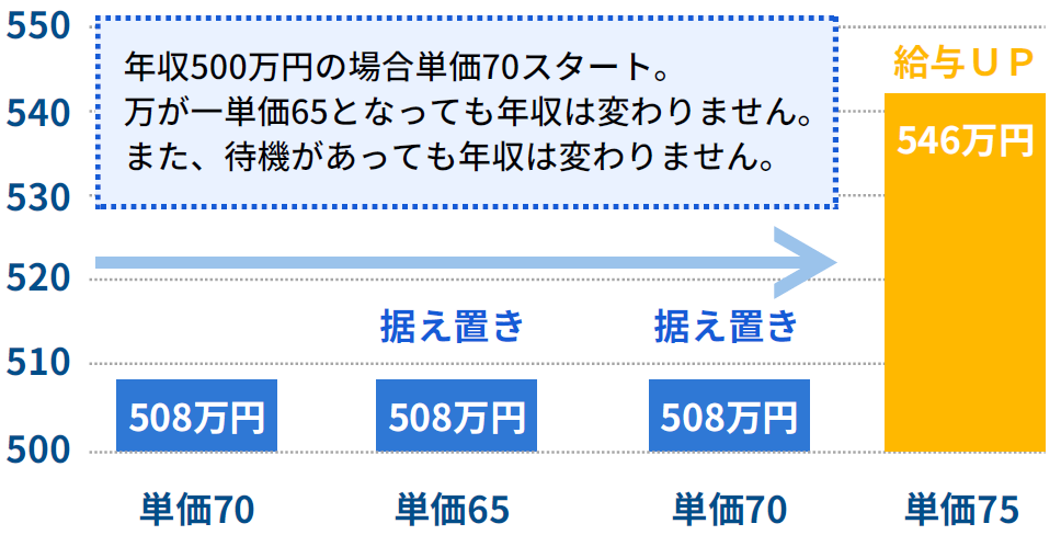 イズムでは会社都合による待機で年収が減ることがないよう、待機時でも給与を100%支給しています。